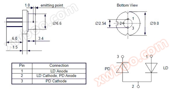 4, lumière continue ou mode de fonctionnement pulsé, temps de commutation est 10ns