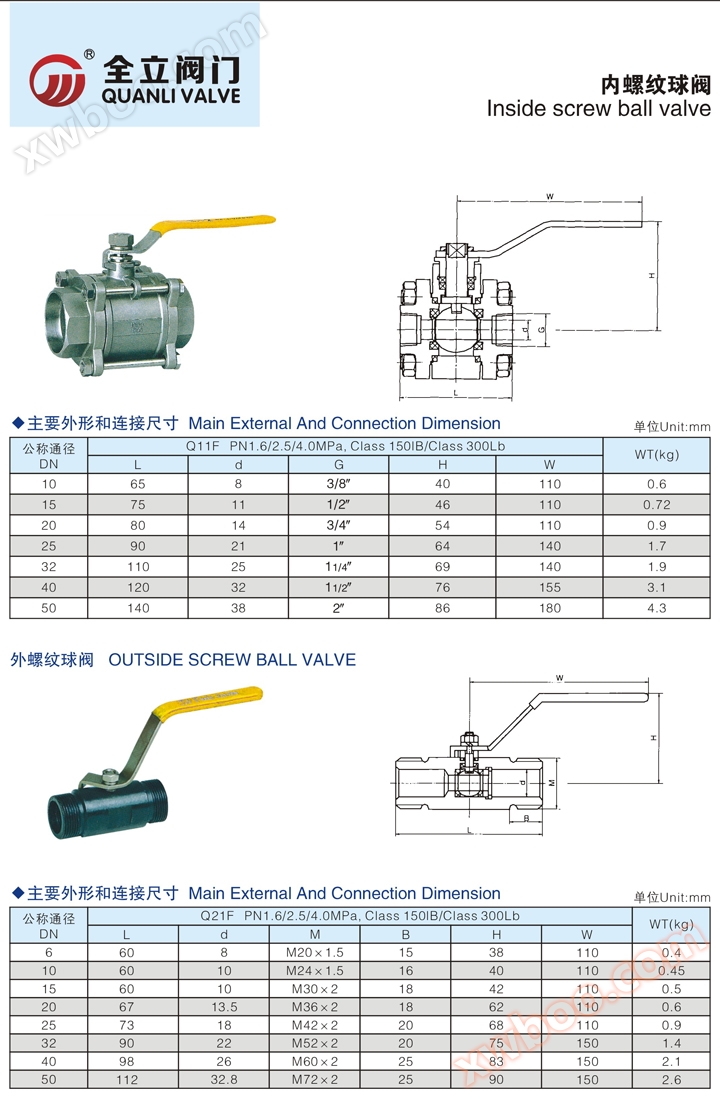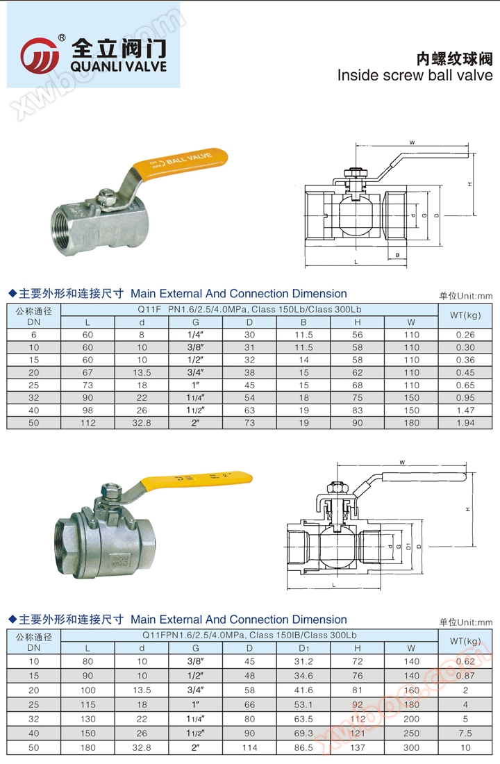 V. q11f vanne à boisseau sphérique femelle à trois plaques dimensions et poids de la connexion extérieure principale